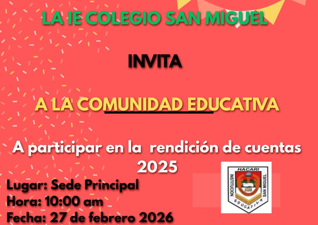 La Institución Educativa San Miguel, será reconocida por su calidad en la formación de niños, niñas y adolescentes en valores, crítica, autónoma, analítica y competente en actividades agropecuarias, con sensibilidad social, respeto por el medio ambiente y comprometidos con el desarrollo de sus comunidades y la región, siendo personas íntegras y responsables con liderazgo en la búsqueda constante de la excelencia mediante la aplicación del mejoramiento continuo.